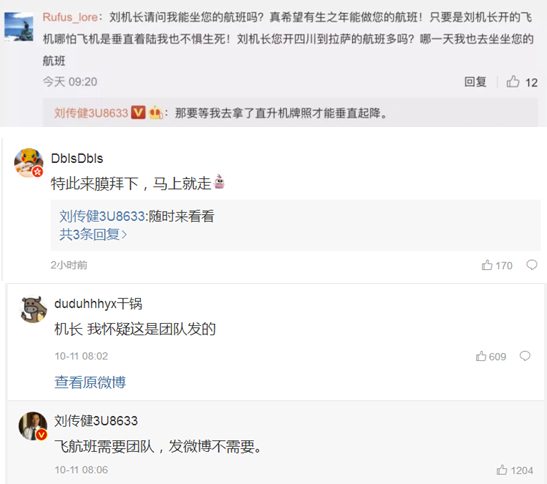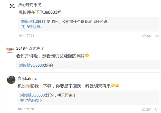 怎么个“宠”法?先来看看机长跟网友们的互动。↓