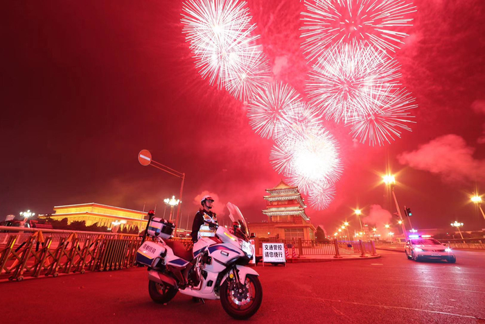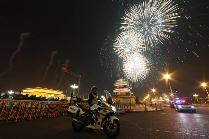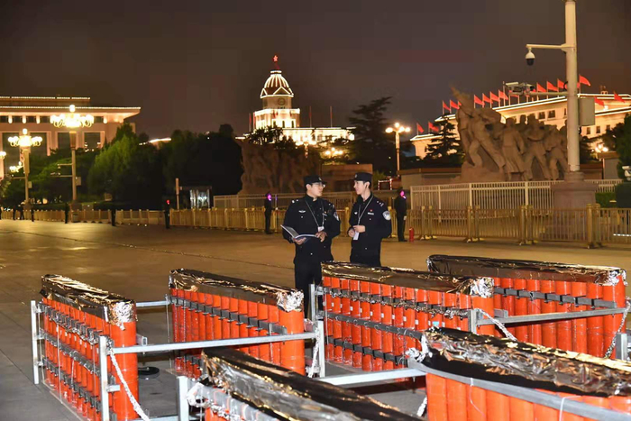 民警在国庆烟花表演期间在天安门执勤。警方供图