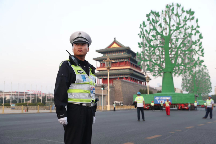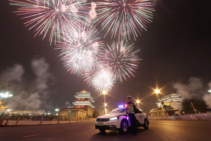 庆祝活动当天,十几万人进出场、大型设备、车辆往来频繁,还有几十万群众走上街头观看烟花表演,让负责组织保障工作的北京市公安局治安总队大型活动管理支队捏了把汗。
