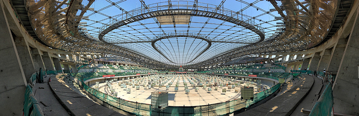 5月9日,国家速滑馆“冰丝带”建设现场。摄影/新京报记者 王嘉宁