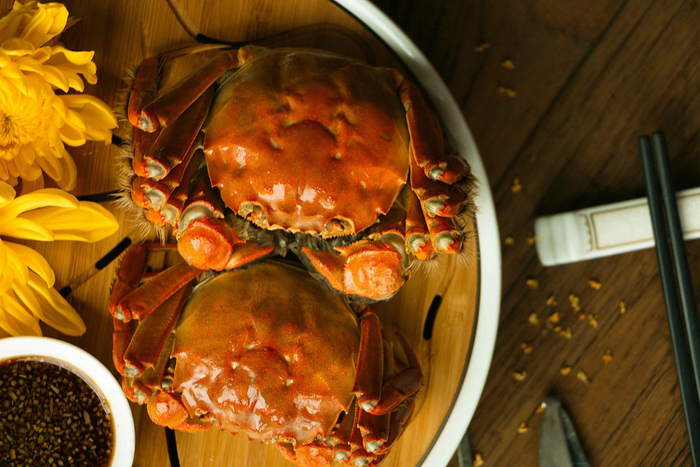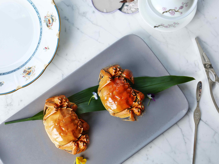 上海鲁能JW万豪侯爵酒店在菱餐厅和航迹厨房分别推出了以大闸蟹为主题的时令美食。你可以在菱餐厅享受到三两半的阳澄湖大闸蟹,采用传统清蒸的烹饪方式保存了大闸蟹的鲜香原味,搭配古越龙山10年陈黄酒最对味。另外,还可以试试浸泡8小时以上的10年陈花雕醉大闸蟹,蟹鲜与酒香融合,非常诱人。在航迹厨房,除了清蒸阳澄湖大闸蟹,还有多种口味的大闸蟹菜品,比如咖喱蟹、油酱蟹、咸蛋黄蟹、香辣蟹和葱姜蟹等。