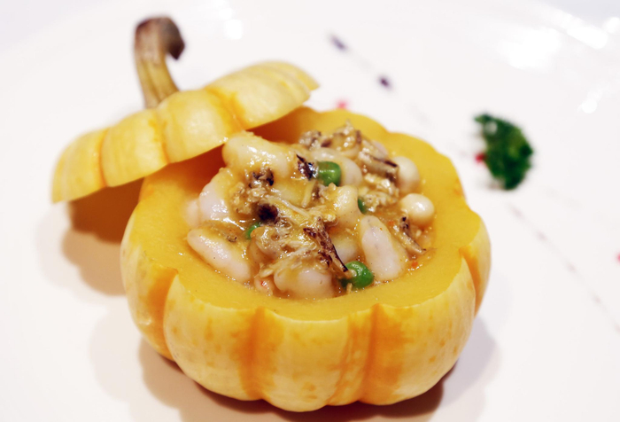 此外,蟹味南瓜虾也是太湖边上的美味,采用太湖当日捕捞的湖虾与大闸蟹为主料,取虾仁、蟹黄、蟹肉入锅翻炒,加以南瓜高汤提鲜,搭配温热的陈年绍兴黄酒,最是秋季江南滋味。