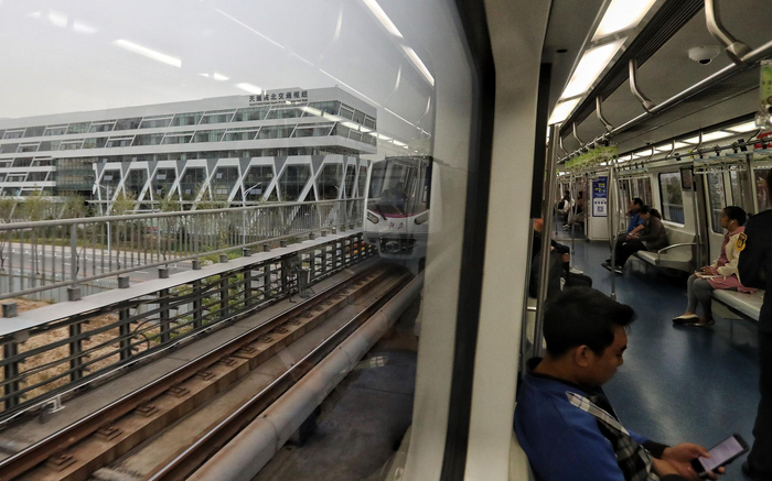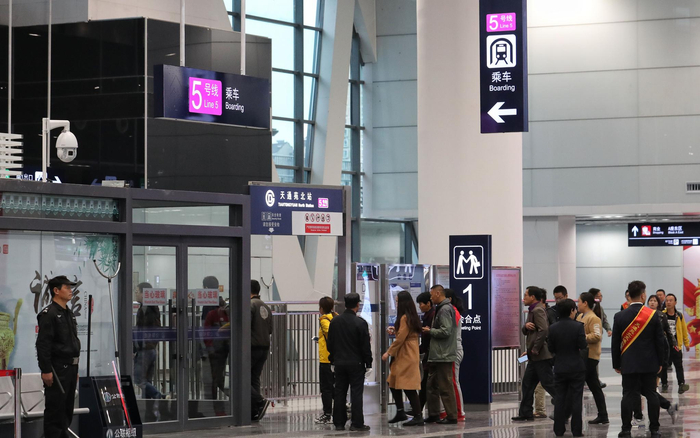 枢纽站内站台分布遵循同方向线路相邻原则,乘坐地铁出站后,只需步行3分钟左右就可顺利换乘。摄影/新京报记者 王贵彬