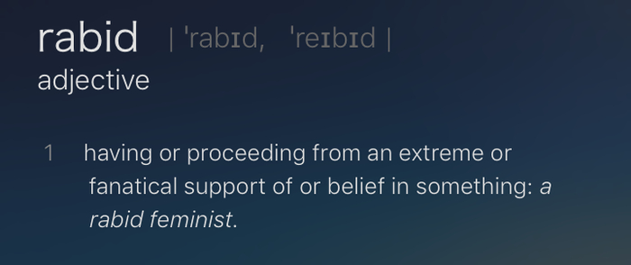 当然,仅就2016年的那次事件来说,问题不仅在于其所收录的例句是否在现实中存在,而在于,当词典编纂者声称他们根据数据所示收录最常用的词条时,其所收录的“狂热的女权主义者”却并非是“狂热”这一词最常见的搭配,“狂热的粉丝”和“狂热的支持者”才是“狂热”(rabid)最常用的短语。