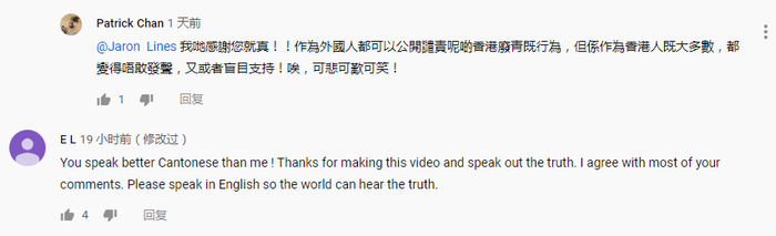 说到激动处,莱恩斯连用了4个“非常”。记者还注意到,近期他上传的另一段Vlog也对暴力分子进行了揭批,告诉全世界香港的真相!↓↓↓