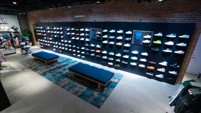 世贸天阶的这家Adidas三叶草旗舰店,其装修风格是本次重装开业的最大亮点,旨在传达三叶草概念店的独特性。新店着力以老北京四合院怀旧风作为整体定位理念,运用老北京铜狮子门、红砖灰瓦元素呈现出全新的设计风格。店内全北京最大的鞋墙上端、试衣间均大量使用高清投影设备,营造出潮流与历史混搭的炫酷氛围。