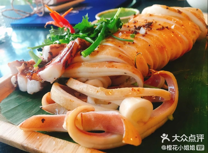 铁板鱿鱼、烤鱿鱼是鱿鱼最接地气儿的吃法,干锅鱿鱼是最火爆爽气的吃法,而小苏苏SUSU的青椒鱿鱼就充满了爽口的东南亚风情。味道鲜嫩自不必说,很多人对烤鱿鱼的蘸料也是赞不绝口,嫩绿的蘸料让人看一眼就食欲大增,微辣清爽的口感令人难忘,但蘸料的味道却没有抢了鱿鱼本身鲜味,虽然简单却给人留下难忘的淳朴好印象。