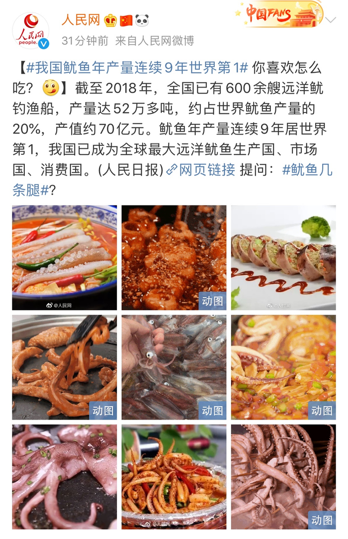 有一个令吃货们“喜大普奔”的消息:我国鱿鱼年产量连续9年世界第一!