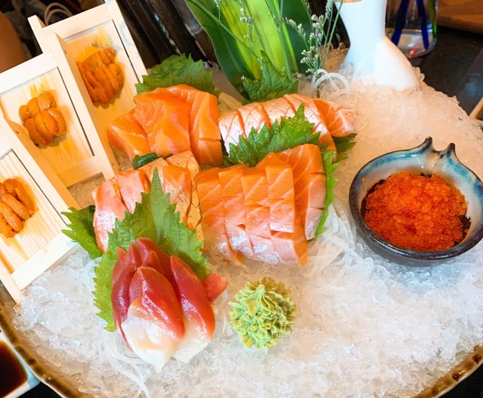 很多人吃三文鱼的首选就是刺身。这里的挪威三文鱼十分新鲜滑嫩,“入口就可以感到弹牙感,稍微咀嚼就能在嘴里均匀化开,充满了三文鱼特有的香甜味道。”尤其是厚切的做法,更是令很多三文鱼粉丝有着大快朵颐之感。