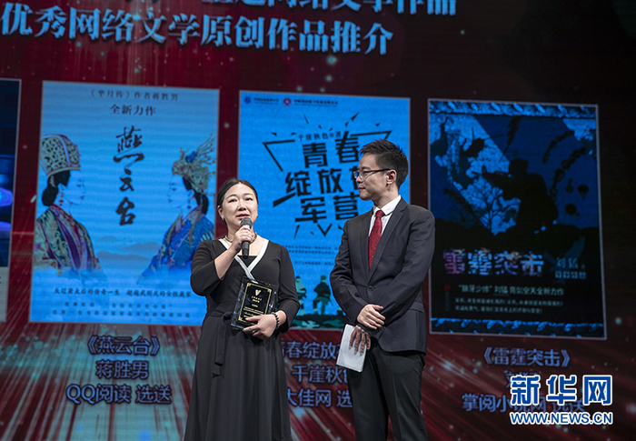 蒋胜男发表获选感言。新华网 郭小天摄