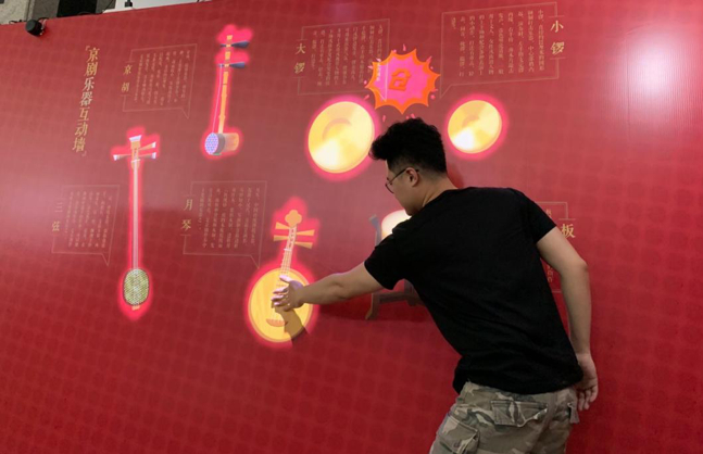 展览中的《京剧乐器互动墙》。北京汽车博物馆 供图