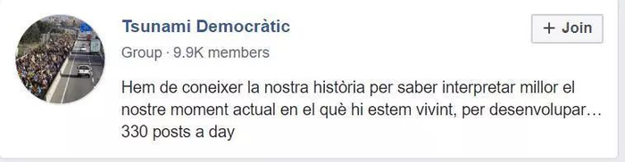 据报道,在最近的独立抗议中,一个名为“民主海啸”(Tsunami Democràtic)的组织将整场抗议大幅升温。这些行动暂未公布其领导人,主要是利用各大社交网络联系其成员。他们会在发布的信息里给出目标地点,号召大家前往该处发起抗议行动。