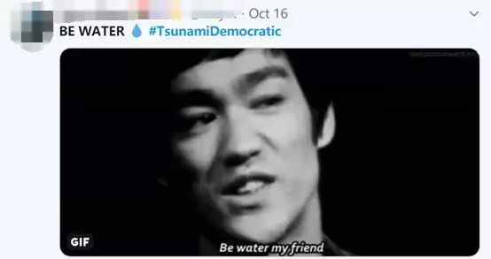 在推特上“民主海啸”的相关讨论中,“像水一样”这一概念也经常被独立运动支持者提及。
