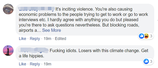 然而,对发生在本土的这些被西方媒体认定的“香港式抗议”,西方社会却存在大量抨击。针对英国抗议者企图站在火车顶进行抗议的行为,不少网上评论写到“这种行为应该被停止,不该鼓励人家去做这种容易让人受伤的事”。甚至有网民对这一行为破口大骂。