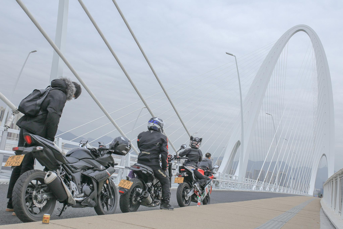 京蜜实地打卡发现,从桥头走到桥尾,用时半小时以内。如果你觉得全长一公里的大桥路程太过漫长,那么992路公交车可以载你一程。但是步行还是首选,在人行道上,不仅能拍到好看的钢塔,还能邂逅许多骑行爱好者。这里还吸引了不少摩托车手,从宽广开阔的桥面上飞驰而过,那个feel倍儿爽。