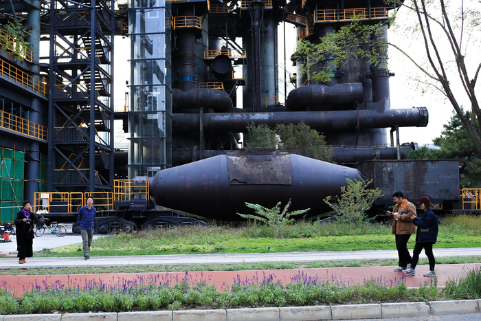 时值凉爽的秋季,走在空旷干净的旧址大道上,你将被浓厚的工业气息团团裹挟。运气好的话,还能偶遇正在备战冬奥会的运动员。