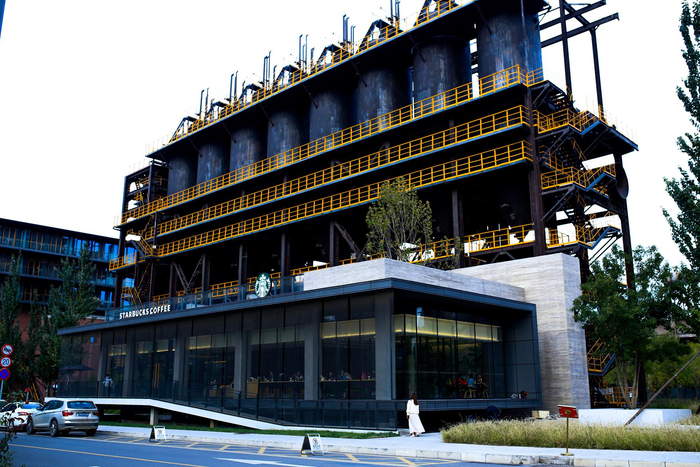 首钢园的星巴克咖啡很火,目前它是园区内唯一对外提供餐饮服务的商铺,有“京城最酷星巴克”之称。在首钢园没有正式对外开放之前,跟门卫报上一句“去星巴克”,成了入门通行证。离它最近的厕所在一旁的首钢工舍智选假日酒店里。不论是咖啡店还是假日酒店,它们都与首钢园保持着相同的调性——由老厂房改造而成。