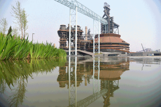 紧邻三号高炉的一汪池水也值得一游,它有一个好听的名字——秀池,始建于1940年,原来是高炉工艺冷却水的晾水池。别看它表面风平浪静,其实在水下暗流涌动。设计者在原有约4.5米深度的水下空间内植入了3.6米层高的地下停车库,可供800余辆汽车停放。除此之外,秀池下还藏了一处水下展厅,建筑面积约有5000平方米。