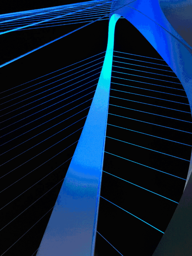 新首钢大桥上的钢塔流光溢彩。