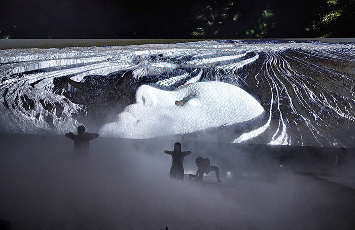 闭幕式上演户外实景多媒体光影秀《东·西》。