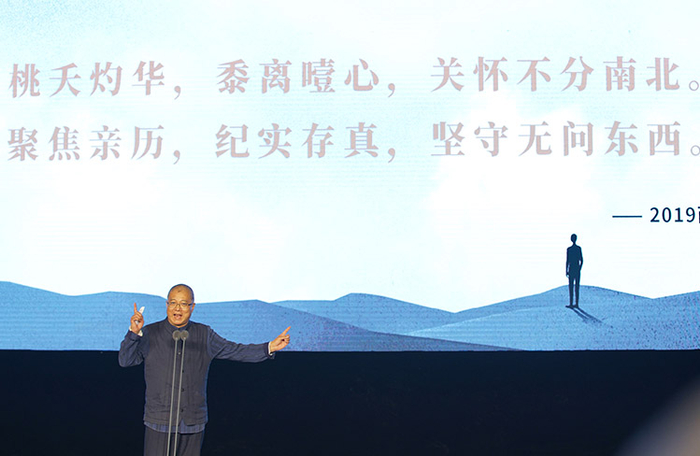 闭幕式上,西湖国际纪录片大会艺术总监、中国美术学院院长许江教授致辞并题写对联:桃夭灼华,黍离噎心,关怀不分南北;聚焦亲历,纪实存真,坚守无问东西。
