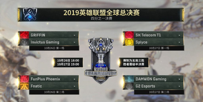 英雄联盟S9全球总决赛8强对阵。图/英雄联盟赛事