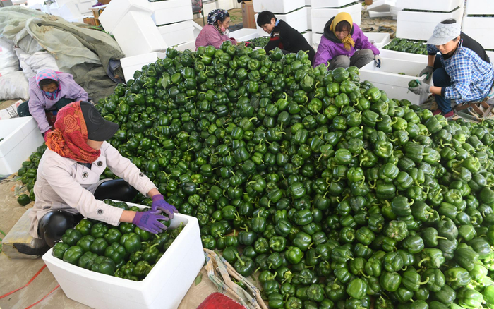 卖出去的尖椒,也会经历一次挑选,收购商会雇佣工人将收来的尖椒再进行一次挑选,然后才打包运走。