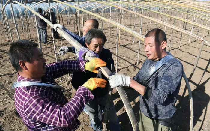 搭大棚的农民。新京报记者 王颖 摄