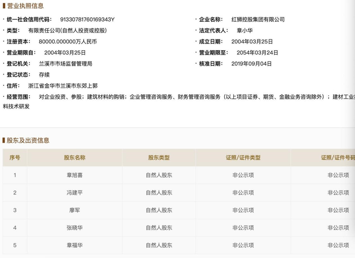 红狮是谁?据新京报记者了解,红狮集团由浙江人章小华创立,通过水泥发家,成长为中国最大民营建材企业,资产超400亿,并在过去几年的水泥行业高景气时代取得了巨额盈利。