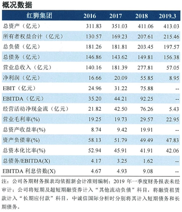 今年4月,中诚信在出具的红狮集团2019年第一期中期票据信用评级中,给予了红狮集团主体信用等级AA+级,评级展望稳定。