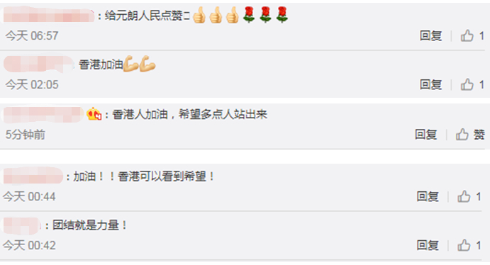 有网友为痛斥暴徒的香港市民点赞,为香港加油↓