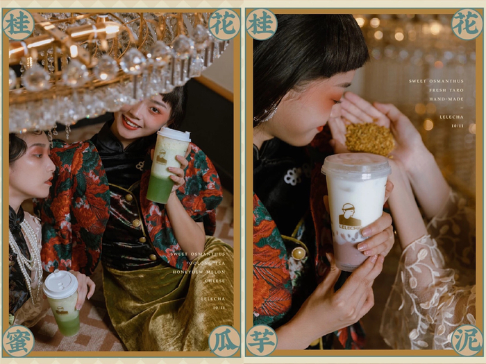 推新品频次超高的乐乐茶当然不会错过桂花季,这次的“桂花限定”就推出了“桂花玫珑酪酪”、“桂花拿铁”、“糖桂花厚芋泥茶”、“桂花酒酿拿铁”等多种新品。乐乐茶选用的桂花来自广西,桂花的清甜悠远搭配蜜瓜的果香、咖啡鲜奶的醇厚、芋泥的绵密、酒酿的迷醉,让充满东方韵味的桂花也搭配出中西合璧的新味道。