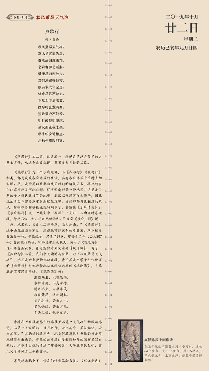 原标题:【清风诗历】今日读诗:秋风萧瑟天气凉
