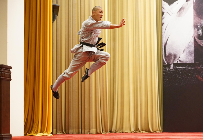 少林武术走进人民大会堂 《功夫小镇》首映|组图