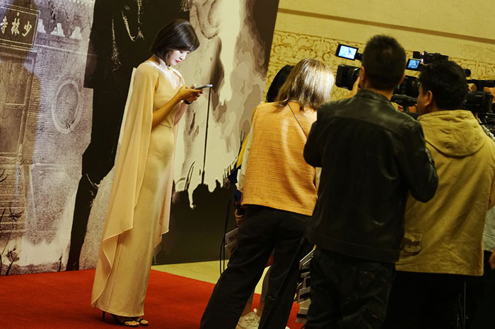 女主演高映雪准备接受媒体采访。