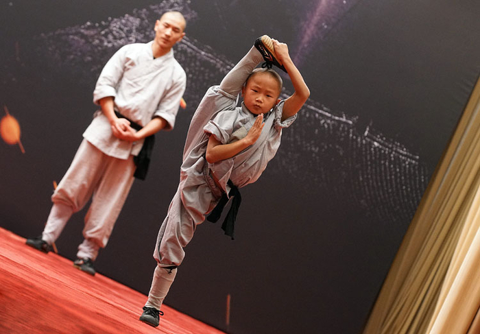少林武僧表演团的小武僧们为观众带来功夫表演。
