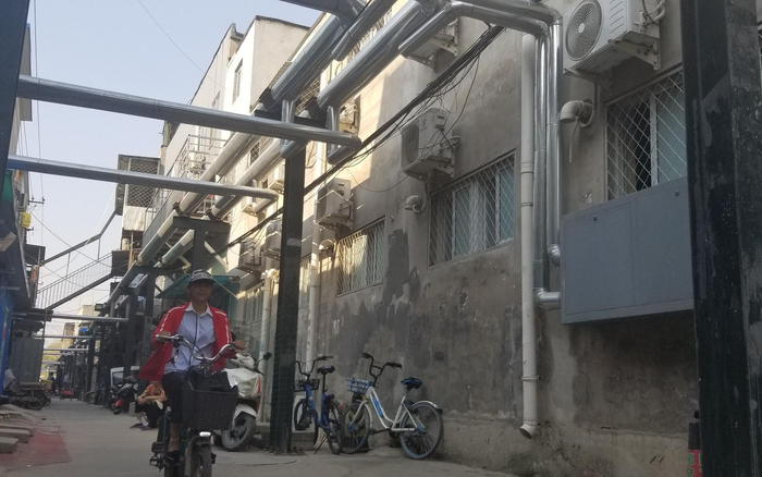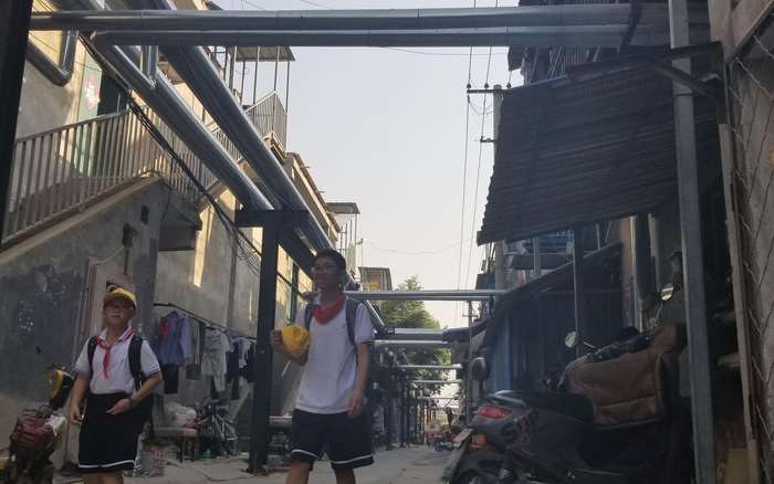 入夜之后,村里的大路上还能看得清人,但小巷子里,路灯仅有的亮光甚至照不到地上,只能照到头顶纵横交错的供热管道和密密麻麻的电线,远远看去,有点儿蒸汽朋克的味道。尽管是夜晚,但每条巷子里都有人来往,一直到夜深人静。