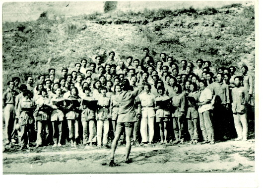 1939年,冼星海指挥鲁艺学员排练《黄河大合唱》。照片由延安鲁艺文化园区提供