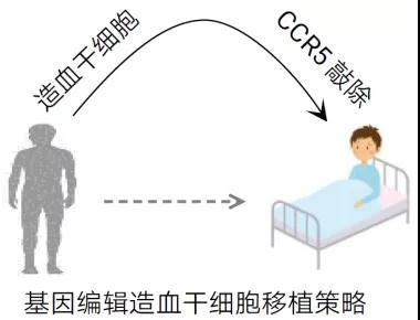 2007年,患有白血病合并艾滋病的“柏林病人”在接受具有CCR5-Δ32突变的造血干细胞移植后,实现了“功能性治愈”。这位名叫蒂莫西·布朗的病人同时患有艾滋病和白血病,2007年他在柏林接受放射疗法和造血干细胞移植,具有CCR5-Δ32突变的造血干细胞在成功移植后能在体内分化为具有CCR5-Δ32突变的T细胞,因此这种治疗方法不仅能治愈白血病,同时也治愈了艾滋病;2019年,“伦敦病人”案例的证明此前“柏林病人”并非个例。因此,通过基因编辑敲除成体造血干细胞上CCR5基因,再将编辑后的细胞移植到艾滋病患者体内有可能成为“功能性治愈”艾滋病的新策略。