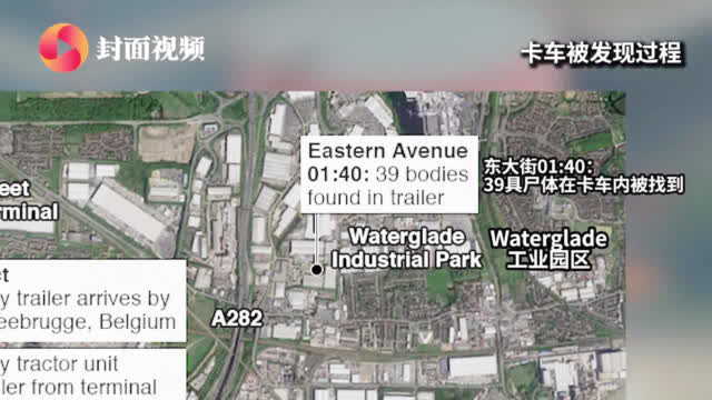 1:05,涉案货车离开港口。1:13,货车沿Motherwell路行驶,蓝色大储物柜外的闭路电视摄像机拍下了它驶过的一幕。行驶约半小时后,在距离英国珀弗利特港(Purfleet)不到两公里的工业区停放,随后,39具遗体被发现。
