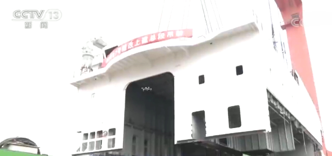 为万米潜水器全新改造的科学保障船在福建马尾船厂完成总段吊装。总段包括科学家房间、潜航员房间、实验室、潜水器车间等等,重达286吨。在现场,吊装过程就像“搭积木”。