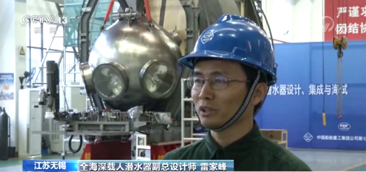 全海深载人潜水器副总设计师 雷家峰:我们知道在一万多米的这个载人潜器的球壳上,在世界范围内,在我们国家立项的时候没有这样一个材料方案,我们经过了三年多的建造的工作才完成了今天的这个任务。