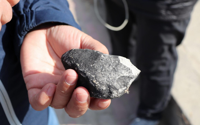 “猎陨”途中,“猎人”发现了一块疑似“陨石”,结果证明是煤矸石。摄影/新京报记者 周博华