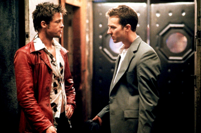 电影《搏击俱乐部》中,男主角(右)与他想象中的另一个自己(左)