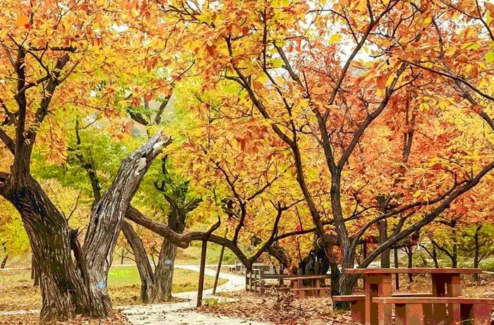 北京怀柔九渡河镇境内的黄花城水长城景区里的明代板栗园。新京报记者 王巍 摄