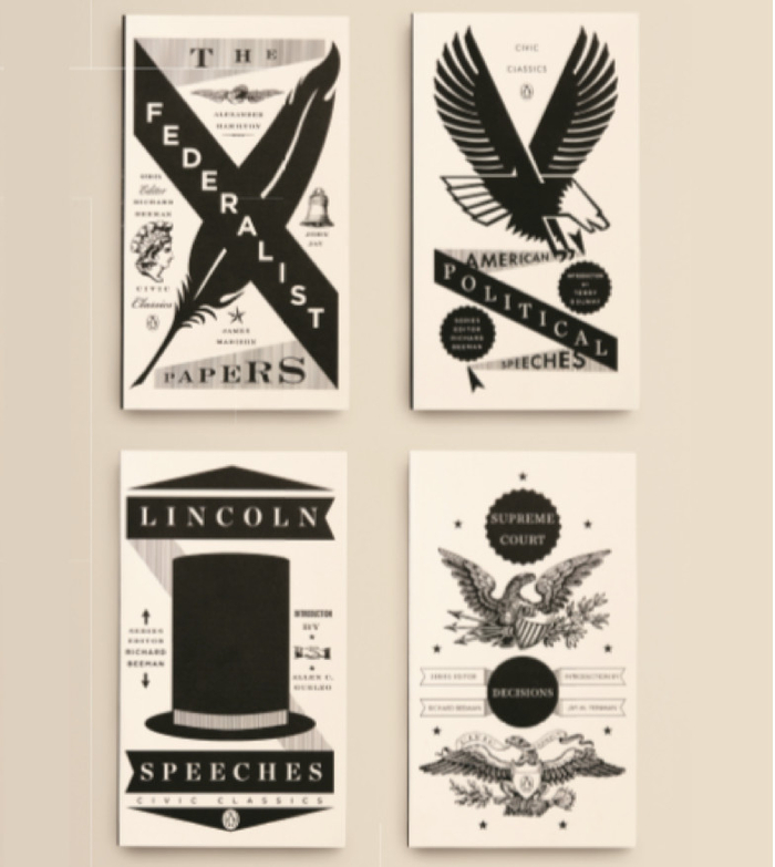 企鹅公民系列。左上《联邦论》,右上《美国政治演讲》,左下《林肯演讲集》,右下《美国最高法院判决》。