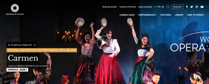 国家大剧院制作比才歌剧《卡门》在欧洲歌剧联盟官网上的展现页面。