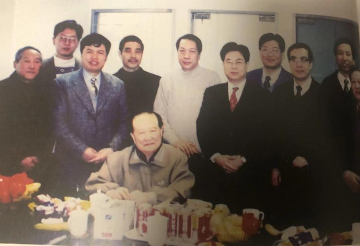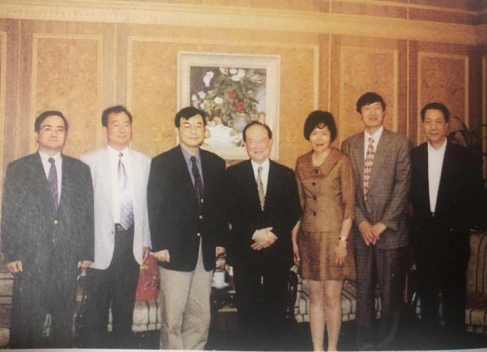 1998年汪道涵(左四)接待台湾《联合报》访问团,章念驰(右一)陪同。