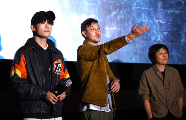 电影主演易烊千玺 、导演曾国祥、监制许月珍。新京报记者 郭延冰 摄