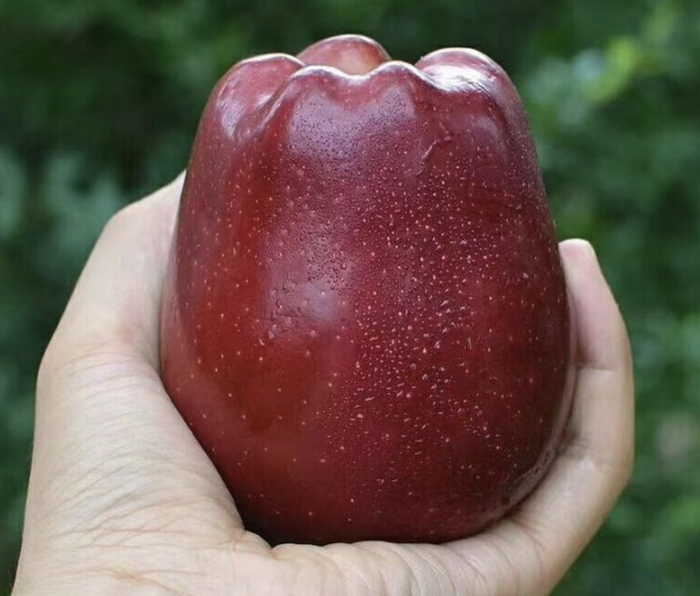 近日,新京报记者走访北京新发地市场,在多家水果商的店面都见到了天水花牛苹果。花牛苹果的外观和美国的蛇果十分相似,个头比普通的苹果要大。据果商刘峰介绍,花牛苹果单个果重能达到半斤。